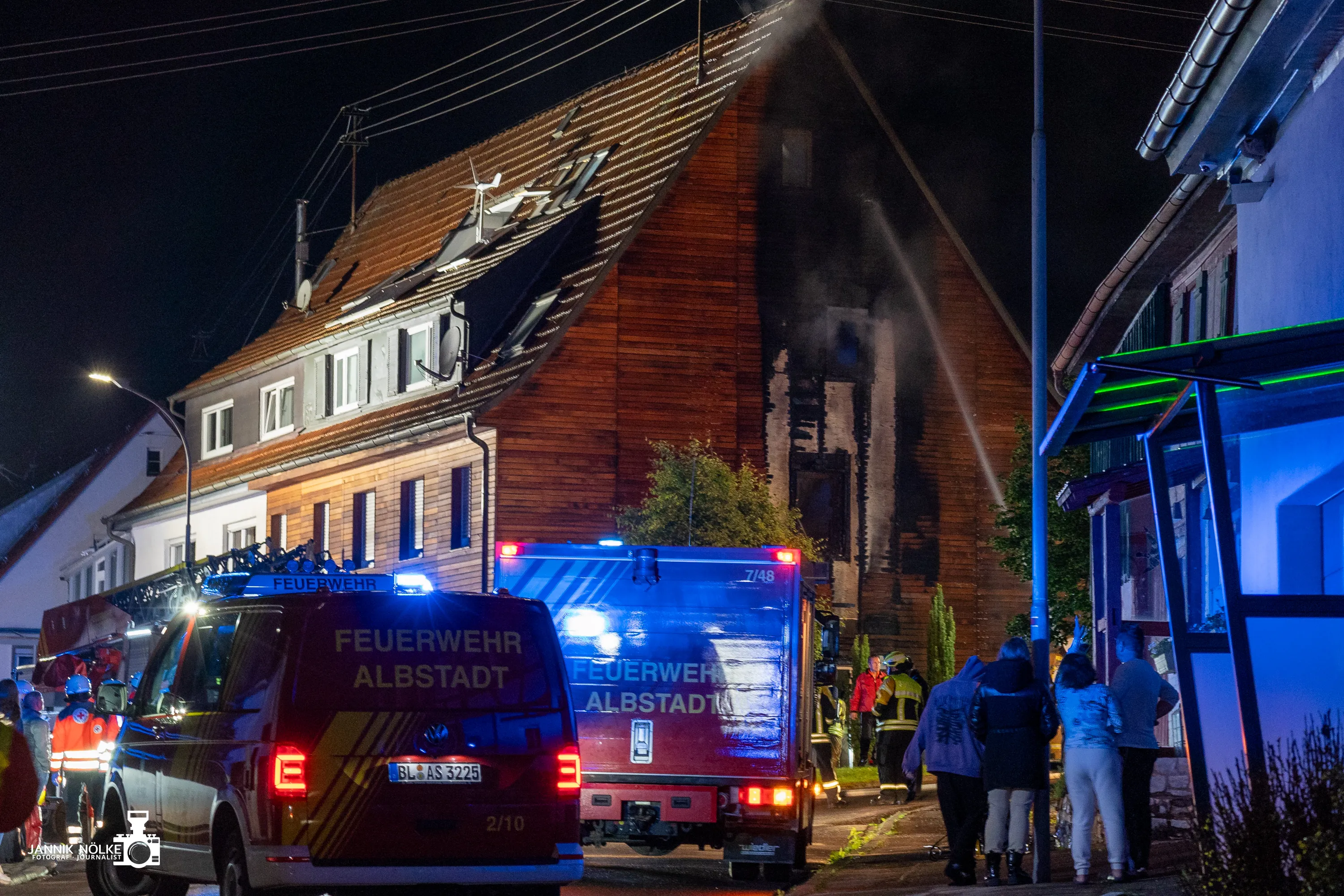Fassadenbrand, 1 Person verletzt, Löscheinsatz dauert an